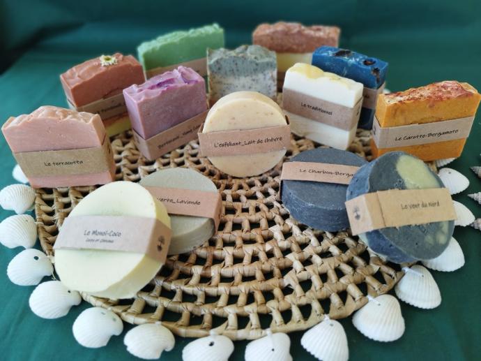 Saponification à froid, valorisation maximale des ressources de notre territoire, coloration 100% naturelle, éco emballage
